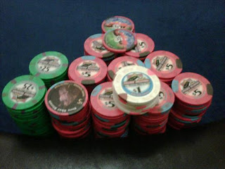 I was planning to head home, when the 5/5 big game broke up, and one of the players decided he wanted to donk around in our little game. "CD" is a good player, but he clearly likes action, and he blew through several buy-ins looking to juice up our game. We're talking big preflop raises, semi-bluffs for stacks, and calling down light. Well, in the space of a couple of hours CD did juice up the game, but walked away with none of the money he put into the game. To him, though, it was little more than chump change. Thank you, come again!